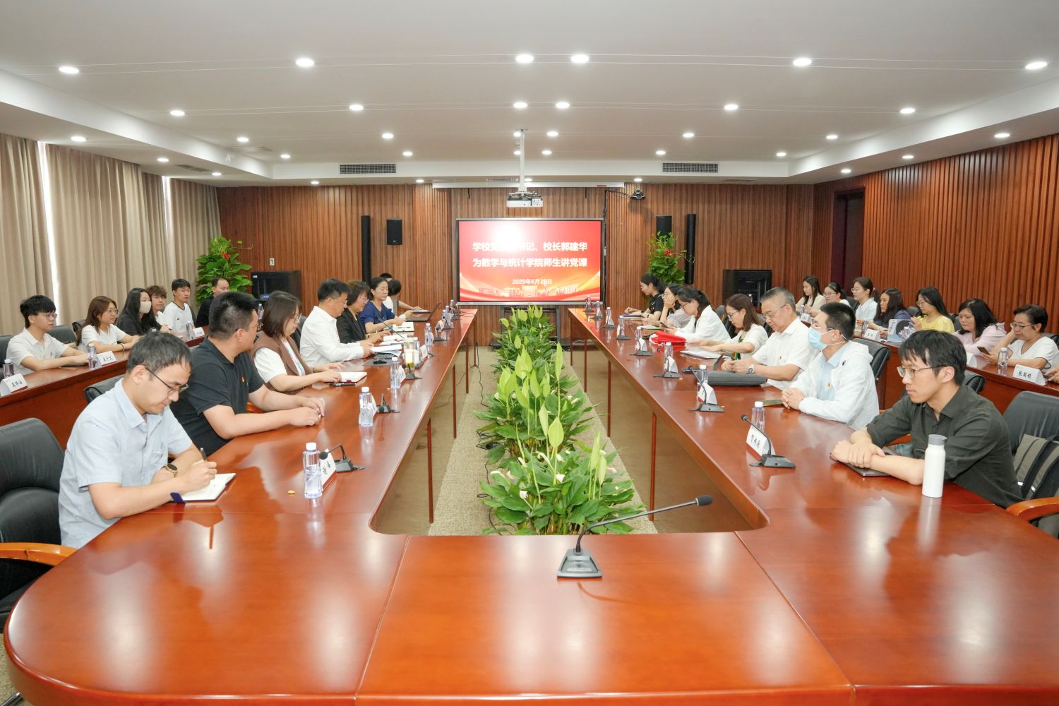 為扎實推進深入貫徹中央八項規定精神學習教育,6月29日,學校黨委副書記、校長郭建華為數學與統計學院師生講授專題黨課。數學與統計學院領導班子、系主任、師生黨支部書記、應用統計系教師和學生代表參加黨課學習,黨課由數學與統計學院黨委書記周艷杰主持。