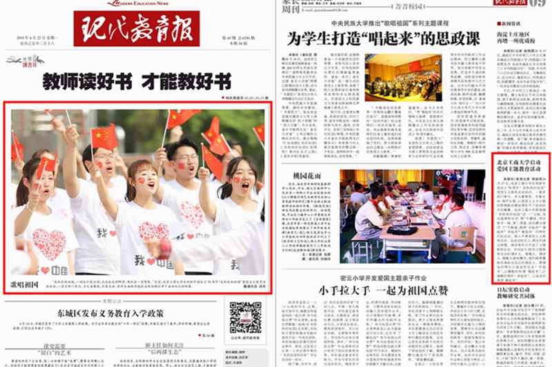 2.《現(xiàn)代教育報(bào)》4月19日第A9版報(bào)道:《北京工商大學(xué)啟動(dòng)愛國主義教育活動(dòng)》