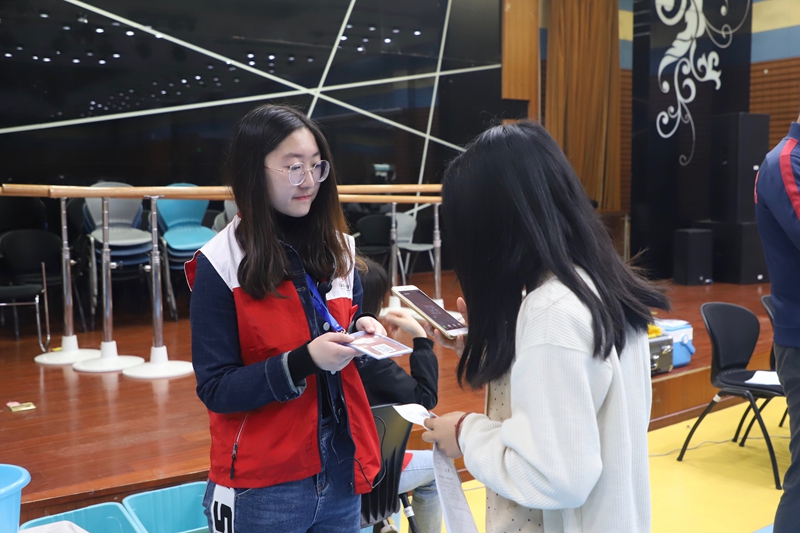 獻(xiàn)血的同學(xué)們?cè)丛床粩啵β档墓ぷ鲬?yīng)接不暇,志愿者們精神飽滿地做好每一項(xiàng)工作,引導(dǎo)同學(xué)們進(jìn)行排隊(duì)、填表、錄入信息、等候檢驗(yàn)結(jié)果等流程,維持現(xiàn)場(chǎng)秩序,并在同學(xué)們獻(xiàn)血完成后,及時(shí)給他們遞上紅糖水和食物。來(lái)自藝術(shù)與傳媒學(xué)院的程小喬同學(xué)說(shuō):“我的任務(wù)是接待同學(xué)、發(fā)放表格和指導(dǎo)同學(xué)們填表,昨天下午我們提前來(lái)布置場(chǎng)地,在此前,為保證志愿工作有序進(jìn)行,學(xué)校還專門進(jìn)行了培訓(xùn)工作。獻(xiàn)血活動(dòng)是一件光榮的事,能夠作為志愿者為大家服務(wù)我也很開心。”