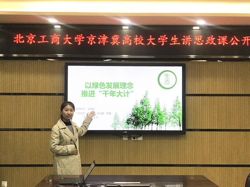 本次大學生講思政課比賽活動得到了同學們的積極響應,經過評審小組的嚴格把關和層層選拔,最終有7組團隊晉級當日的現場比賽。同學們的講課,選取了思政課中的相關理論知識點,圖文并茂,講授生動。本科生組中劉玎睿講授了新發展理念指引下的京津冀協同發展;王芊以“小我匯聚成大我,以青春守護祖國”為題,講授了當代大學生的使命責任;王婷萱團隊則結合專業,講授了如何發揮京津對口幫扶作用,推進貧困地區脫貧的問題;張娜、沈華玲團隊則講授了“我將無我,不負人民”的深刻內涵;李冰玉結合當代大學生所思所想所為講授了“如何做時代新人,創造有價值的人生”。研究生組中,張如倩代表團隊講授了如何以綠色發展理念推進生態文明“千年大計”;龔玉講授了在“京津冀協同下如何提升大學生文化自信”的問題。同學們的精彩講授,獲得了陣陣掌聲。