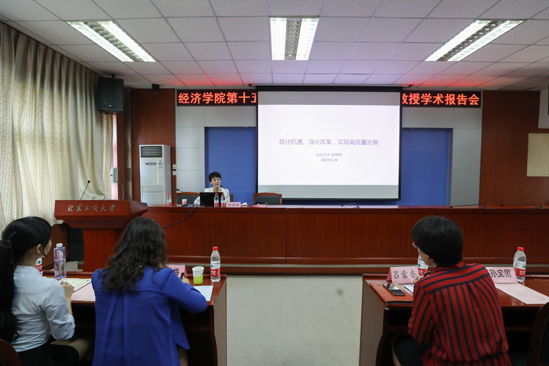 孫祁祥教授在致辭中表示,能夠被聘任為北京工商大學(xué)客座教授,倍感榮幸,也深覺責任重大,同時也對經(jīng)濟學(xué)院在應(yīng)用經(jīng)濟學(xué)博士點申報、北京市高精尖學(xué)科建設(shè)上取得的成績表示祝賀,她愿意盡全力繼續(xù)為學(xué)北京工商大學(xué)學(xué)科建設(shè)貢獻自己的力量。
