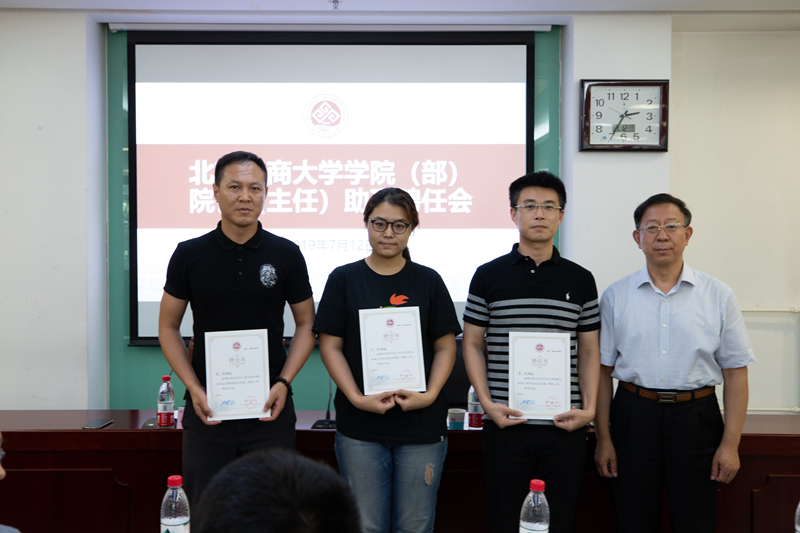 孫寶國校長為院長(主任)助理逐一頒發(fā)聘書,并發(fā)表講話。校長談到,學(xué)校黨委決定聘任學(xué)院(部)院長(主任)助理是根據(jù)學(xué)校事業(yè)發(fā)展需要、為全面實(shí)現(xiàn)“2050年建成具有商科、輕工、食品特色的世界一流大學(xué)”目標(biāo)而做出的重要舉措。校長表示,學(xué)校黨委為大家提供展示才華的平臺,為每一位助理安排具體分管至少一項工作,作為成員參加院(部)黨政聯(lián)席會,討論決定本單位重要事項,希望各位助理嚴(yán)格要求自己,快速成長。同時,校長提出三點(diǎn)要求,一是要不忘初心,牢記使命。不忘初心就是要“以人民為中心”,具體到學(xué)校即是“以學(xué)生為中心”,所有工作的出發(fā)點(diǎn)和落腳點(diǎn)是為學(xué)生成長成才服務(wù)、為教職工服務(wù)。牢記使命就是要緊盯實(shí)現(xiàn)“兩個一百年”奮斗目標(biāo)的時間節(jié)點(diǎn),爭取盡早全面實(shí)現(xiàn)“369”“421”指標(biāo),爭取在建校100周年時將我校建成具有商科、輕工和食品特色的世界一流大學(xué),希望大家為此而努力奮斗。二是要勇于擔(dān)當(dāng),開拓進(jìn)取。勇于擔(dān)當(dāng)就是要認(rèn)真工作,敢于負(fù)責(zé),善于負(fù)責(zé),多把困難留給自己,將方便留給師生;工作中要敢于要求,同時注意工作方式方法,不怕吃苦受累,工作上要多補(bǔ)臺。開拓進(jìn)取就是要解放思想,不能安于現(xiàn)狀,思路要開闊,要拓展合作空間,多向國內(nèi)外兄弟高校學(xué)習(xí),在結(jié)合我校學(xué)科發(fā)展實(shí)際基礎(chǔ)上,將好的經(jīng)驗(yàn)做法為我所用。三是希望院長(主任)助理又紅又專,兩手抓,兩手都要硬。要認(rèn)清“雙肩挑”責(zé)任,在其位謀其政,要具有承擔(dān)壓力的能力,面對原則問題,要敢于堅持。同時,希望各位助理在業(yè)務(wù)上更加努力,更加自信,通過這個平臺的歷練,教學(xué)科研管理等各方面均有較大收獲,盡快脫穎而出。