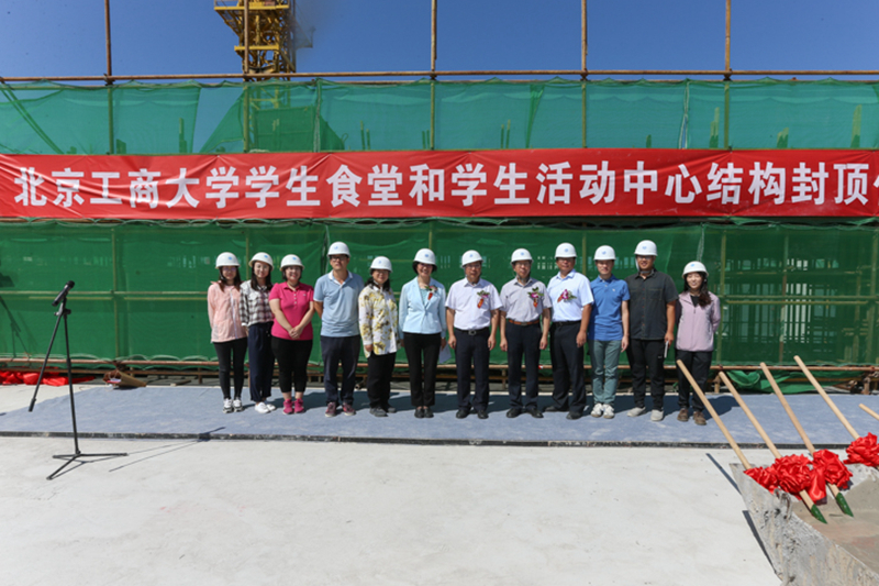 8月30日上午,16-02-01地塊學生食堂和學生活動中心項目主體結構封頂儀式在良鄉校區二期新建工程工地現場隆重舉行。學校黨委書記黃先開,校長孫寶國,副校長張耘、方德英,中國新興建設開發有限責任公司黨委書記沙吉培、建研凱勃建設工程咨詢有限公司副總經理崔建永、中國中輕國際工程有限公司副院長何嘉欣、中競發工程管理咨詢有限公司副總經理沈毅出席儀式。學校相關部門代表、師生代表及參建單位代表等50余人參加了封頂儀式。儀式由副校長張耘主持。