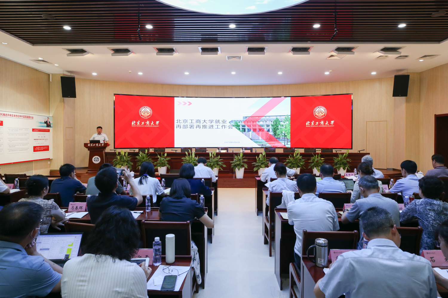 為全面貫徹落實黨的二十大精神,深入學習貫徹習近平總書記重要講話重要指示批示精神,認真貫徹落實全國高校畢業生等青年就業創業工作會議精神,全力推動我校2023屆畢業生就業工作,6月6日上午,學校召開就業再部署再推進工作會,學校黨委書記黃先開,黨委副書記、校長孫寶國,黨委副書記李中奇,黨委常委、副校長鄭文紅和全體中層干部參會。會議由黨委常委、副校長左敏主持。