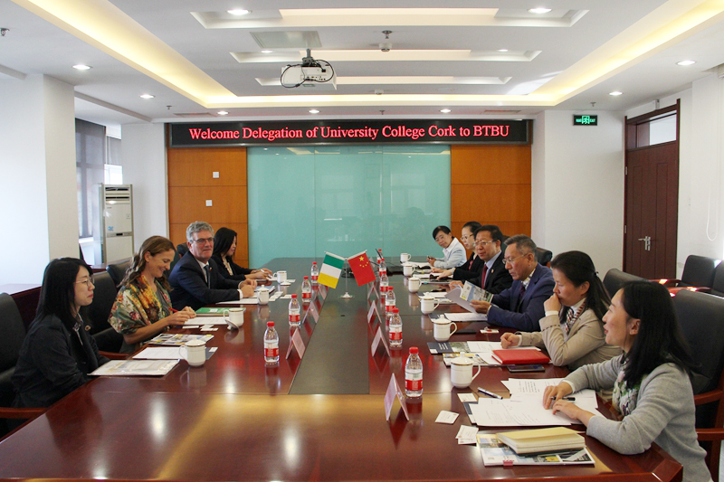 10月21日上午,愛爾蘭國立考克大學常務副校長約翰·哈羅蘭(John O'Halloran)一行四人訪問我校。孫寶國校長在阜成路校區會見了代表團一行,會談由謝志華副校長主持。