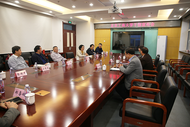 隨后,學校在阜成路校區召開干部宣布大會。全體校領導和黨委職能部門負責人參加會議。會議由黨委書記黃先開主持。