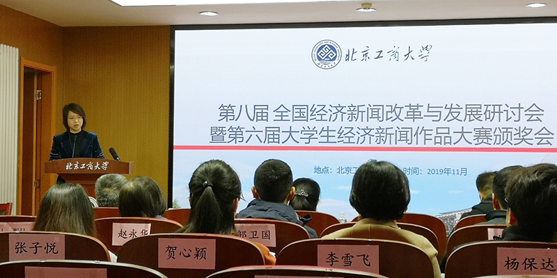 11月9日,由我校藝術與傳媒學院承辦的第八屆全國經濟新聞改革與發展研討會暨第六屆全國大學生經濟新聞作品大賽頒獎會在京召開。我校黨委副書記董竹娟出席會議。教務處處長曹顯兵參加會議。清華大學、北京大學、人民大學、中國傳媒大學等高校,新華社、彭博社、經濟觀察報等新聞媒體的專家學者出席并參加了研討。藝術與傳媒學院院長王擎主持開幕式。