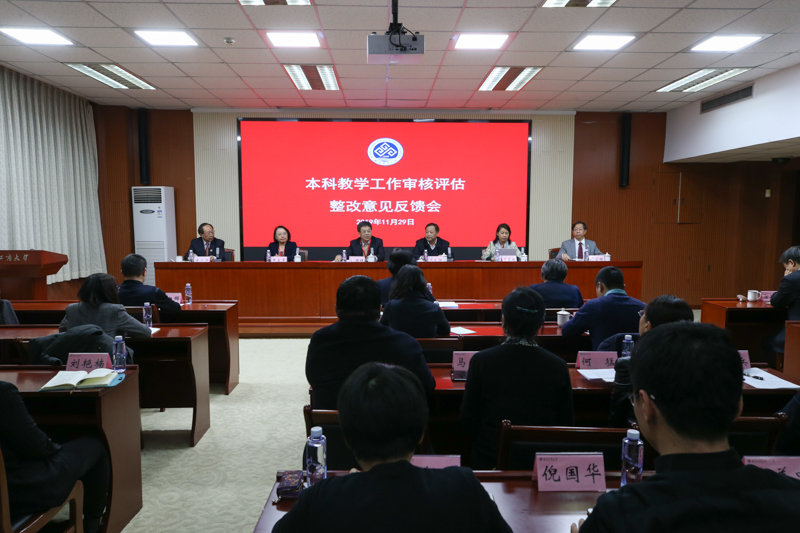 11月29日下午,學校召開本科教學工作審核評估整改回訪意見反饋會。專家組組長孫洪祥對回訪情況進行反饋。黨委書記黃先開作表態(tài)發(fā)言。市政府教育督導室副主任馮義國發(fā)表講話。