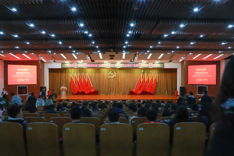 12月17日,“時(shí)代楷模——北京榜樣優(yōu)秀群體“走進(jìn)百所高校、走近百萬大學(xué)生”我校專場(chǎng)報(bào)告會(huì)在良鄉(xiāng)校區(qū)開講。北京市委宣傳部精神文明宣教處副調(diào)研員寧彤彤出席報(bào)告會(huì),學(xué)校學(xué)生處處長(zhǎng)呂良、黨委宣傳部副部長(zhǎng)楊艷萍、學(xué)生處副處長(zhǎng)蓋曉慶及師生代表500余人現(xiàn)場(chǎng)聆聽了報(bào)告。