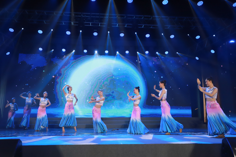 管樂團的一曲《智取威虎山——打虎上山》將西洋樂器的靈悅動耳與東方傳統民樂的高亢激昂結合起來,戲曲的演唱字正腔圓、韻味十足,引得同學們連連鼓掌;校團委選送的《夢之魂》中,鋼琴與舞蹈完美融合,舞者踮起腳尖翩翩起舞,帶給觀眾極致的視聽享受;留學生帶來的《全世界在講中國話》節奏歡快,身著旗袍的留學生漢語流利、身姿婀娜,展現了對中國文化的熱愛;民樂團演奏的《愛我中華》管弦幽韻、鼓聲激昂,指尖撫弄間洋溢著民族音樂的悠揚輕快,令人耳目一新;舞蹈團演繹的《共同的家園》舞姿裊娜靈動,各民族舞蹈輪番上演,展示了民族大融合的繁榮景象。