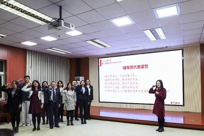 1月14日晚,學校舉辦第七屆輔導員素質能力大賽暨2019年度學生工作總結表彰會。校黨委書記黃先開、校黨委副書記張德玉、紀委書記歐陽媛、副校長張耘、鄭文紅以及學校思想政治工作(三全育人)領導小組成員、學工部、研工部、招生就業處、團委成員以及各學院副書記、全體輔導員參加。北京市委教育工委宣教處處長寇紅江、教育部高校輔導員培訓和研修基地依托單位、北京師范大學學工部部長隋璐璐作為特邀嘉賓出席活動并做大賽評委。