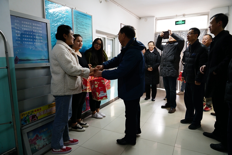 發(fā)展規(guī)劃處處長王小藝、學(xué)校辦公室主任祝鈞、黨委宣傳部常務(wù)副部長何猛、研究生院院長徐丹丹、國際交流與合作處處長劉影、公共事務(wù)處處長韓軍、保衛(wèi)處處長吉濤、學(xué)生處副處長許峰等陪同慰問。