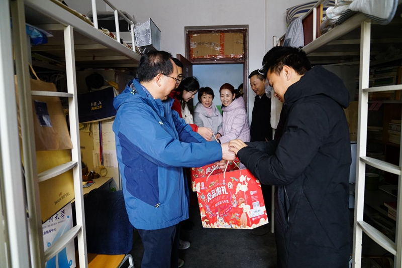 1月24日上午,正值大年三十,黨委書記黃先開、副校長方德英代表學(xué)校黨委和行政在阜成路校區(qū)親切慰問后勤、保衛(wèi)、學(xué)生等部門值班老師和留校學(xué)生。