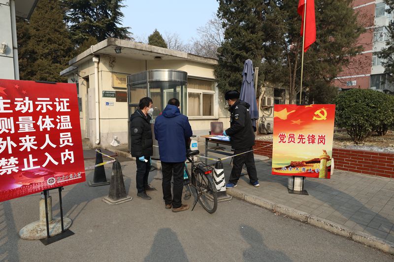 為充分發揮黨員模范帶頭作用,學校黨委在阜成路校區西區、東區南門設置黨員先鋒崗,分上午7:50-10:00、下午13:50-16:00兩班,由學校黨員中層干部與工作人員值崗,用實際行動踐行初心、擔當使命,將黨旗高高舉在第一線。黨委書記黃先開指出,學校黨員干部要積極參與校區門崗值勤守衛、入校人員檢查、信息排查匯總等一系列工作,以模范行動影響和帶動群眾增強信心、戰勝疫情,為打贏疫情防控攻堅戰提供堅強的組織保障。黨員站崗,為的是讓群眾更放心!