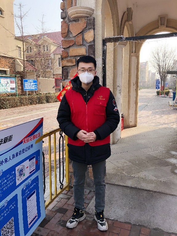 我的工作是輔助社區的工作人員在小區門口檢查是否佩戴口罩,監控進出人數,登記每一個進出人員,并記錄姓名、年齡、居住地址、工作單位、手機號、出入原因、量測并登記人員體溫,了解其是否為外地歸鄉人員、是否途徑武漢或接觸過湖北人員,攔截外來車輛。我的家鄉在北方,天氣寒冷,道路上時常都是積雪,社區的工作者們二十四小時輪流值班,嚴守隔離病毒的防護墻。志愿過程中,大多數人都很配合,還收到了很多關切的問候和鼓勵,不論是一線的工作人員還是積極配合的百姓,我都充滿了敬佩,感受到中國人民的偉大。
