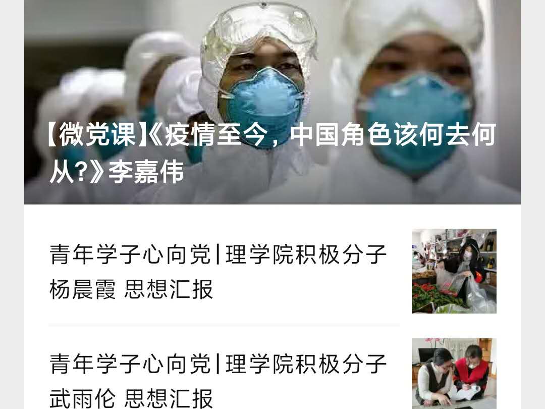 學生工作部抓住學生黨建工作助理團隊、大學生黨員骨干“求實班”、“不忘初心牢記使命”大學生宣講團等本科生黨員骨干團隊,根據防疫工作主題,聚焦大學生所關注的熱點、難點問題制作“微黨課”,從正確看待國際輿論到中國速度的背后解讀,從依法防疫到一線的青年黨員擔當,從制度優勢解讀到黨領導的核心作用闡釋,把防疫實際當作鮮活的課程內容,觸動人、打動人,最終實現教育人的目標。