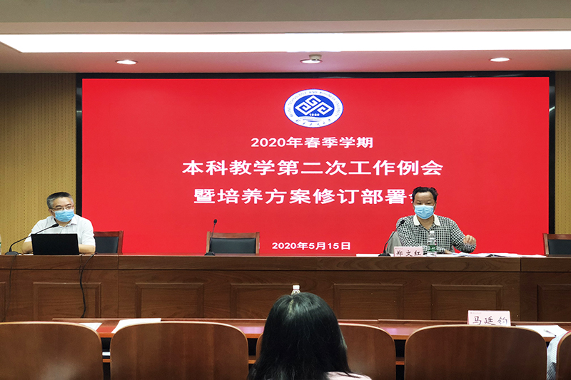 招生就業處處長楊林對招生工作情況進行了通報,重點就我校6月12日校園“云”開放日和外省市中學招生宣傳的準備工作進行了安排。教務處副處長張敏從修訂依據、調研情況、修訂思路、修訂內容、具體要求五個方面對我校2020級本科人才培養方案修訂指導意見進行了詳細解讀。國際交流與合作處處長劉影布置了留學生畢業等相關工作。