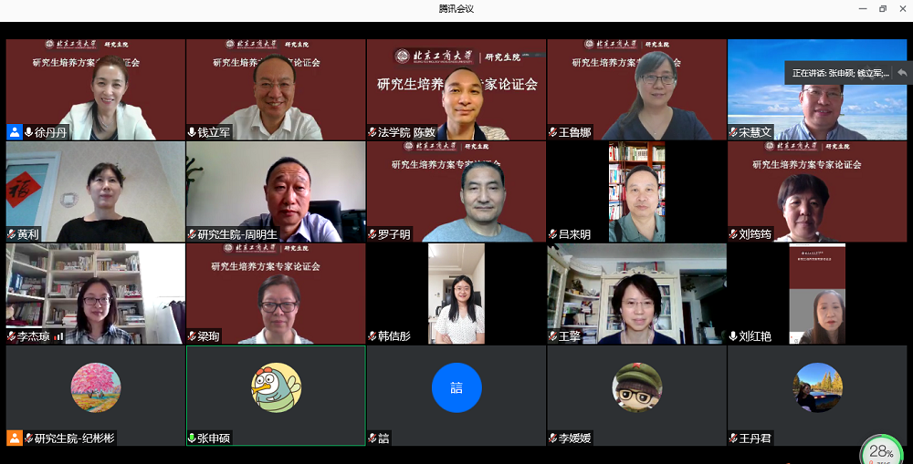 本次培養方案評審會分理工、經管和文法組進行。評審會邀請了中國農業大學研究生院常務副院長郭鑫、首都師范大學研究生院副院長胡德勇、北京建筑大學研究生院副院長汪長征、中央財經大學研究生院院長張學勇、首都經貿大學研究生院院長周明生、對外經貿大學研究生院院長吳衛星、中國政法大學發展規劃與學科建設處副處長黃利、全國藝術碩士專業學位教育指導委員會副秘書長宋慧文等專家組成校外專家組。各學院主管研究生培養的院長、副院長和研究生院副院長錢立軍共同組成了校內專家組。