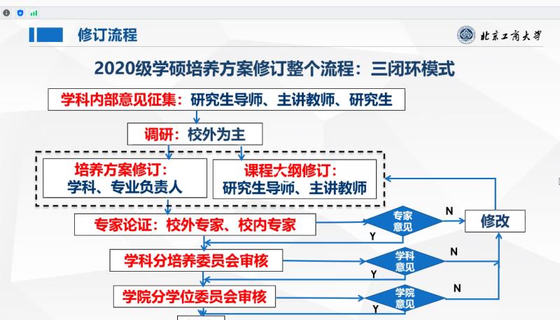 校外專家對我校的培養方案修訂工作予以肯定,認為北京工商大學在學校進入高水平研究型大學發展的新階段,開展研究生培養方案的修訂工作,具有重要的意義。所匯報的各學科培養方案較好地落實了教育部《高等學校課程思政建設指導綱要》的文件精神,突出了立德樹人工作的重要地位;這次修訂的
