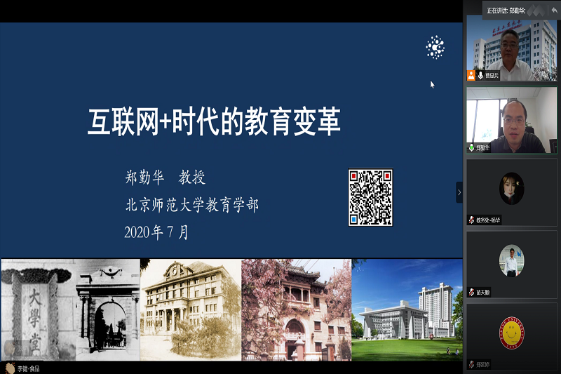 7月9日,我校教育教學思想大學習大討論系列專家講座開講,北京師范大學教授鄭勤華應邀作關于“互聯(lián)網+”時代的教育變革的專題講座。學校教務處處長曹顯兵、各教學單位院長、分管教學工作的副院長、院長助理、系負責人、本科教學秘書、教務處相關人員及專任教師代表150余人線上參加了本次講座。講座由曹顯兵處長主持。