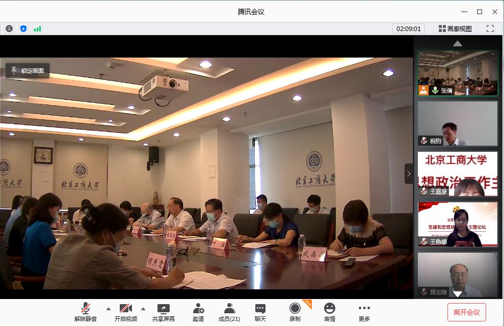 黃先開書記作總結講話,闡明了舉辦主題論壇的意義。他表示,在抗擊新冠疫情的特殊背景下,采取線下主題發言和線上研討相結合的方式,把黨建工作經驗和體會相互學習借鑒,交流了思想,開闊了視野。主題論壇與進行工作部署的黨務工作會不同,主要聚焦工作進行交流研討,應在今后工作中繼續落實中央、市委及市委教工委各項部署要求,進一步堅持完善和創新,推動全面從嚴治黨向基層延伸,不斷走向標準化規范化軌道,提升黨務工作者能力和水平。黃先開書記強調,加強黨的建設和思想政治工作,特別是召開主題論壇,具有重要的理論和現實意義。一是加強黨的政治建設的需要。去年,北京市在“不忘初心、牢記使命”主題教育中,提出“8+2”專項整治任務,其中一項就是打好高校黨的政治建設攻堅戰,反映出高校政治建設存在薄弱環節,各級黨組織應責無旁貸,在如何貫徹市委要求上深入思考。二是落實黨對高校工作全面領導的需要。把黨的領導貫穿辦學治校、教書育人全過程,是辦好教育的根本保證。要通過研討轉變思想觀念,以穩中求進的方式,加強黨對學術組織的領導,發揮學院黨組織作用和系務會功能,通過思考研討和一線實踐,把上級精神理解透徹并貫徹到位。三是落實意識形態工作責任制的需要。要落實主體責任,提升治理能力,完善長效機制,確保正確方向,把這項極端重要的工作抓實抓好。四是加強師德師風的需要。打造高素質教師隊伍建設不能僅停留在學校層面,必須落地落細到系室支部和每一名教職員工身上。要圍繞立德樹人根本任務,推動課程思政與思政課程協同前行、相得益彰,構筑“三全育人”大格局。