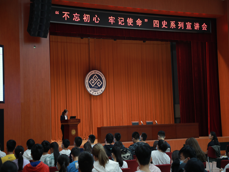 在大學生中廣泛開展“黨史、新中國史、改革開放史和社會主義發展史”的教育,旨在讓青年大學生從歷史發展中體會中國道路為什么“行”,了解中國共產黨為什么“能”,中國特色社會主義為什么“好”。學生工作部在不斷總結前期四史學習的經驗上,安排“不忘初心、牢記使命”大學生宣講團開展四史的主題宣講,用青年大學生的視角去解讀歷史,以大學生身邊人的身份去講述內在道理,易于大學生入耳入腦入心。