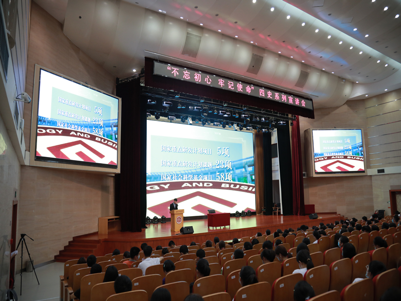 “玉淵潭清,永定河長,這里有我親愛的北工商....”伴隨著悠揚的北工商校歌,宣講團的宣講員們,進行了北工商校史的宣講。從組成北工商的三所學校講起,介紹三所學校作為行業院校的光輝歷史,把學校建校70年以來“立學為民”“學而為國”的歷史脈絡完整呈現。“一二·九”運動和北工商的聯系,北工商學子積極參與國慶游行,通過學校歷史的介紹、照片的展示,讓剛剛入校不久的新生對北工商精神有了更為深入的了解。結合身邊的北工商榜樣,介紹優秀校友的事跡,講述了北工商人扎實求學,突破創新的學術之路,特別是校長孫寶國院士突破國外卡脖子技術,創制中國特色的香精香料制備工藝和標準的歷程,得到了北工商學子的熱烈反響。參加宣講會的20級新同學紛紛表示將以北工商的歷史為榮耀,以優秀的前輩為榜樣,在實現兩個百年目標的重要歷史機遇期,奮發有為貢獻北工商青年學子的力量。