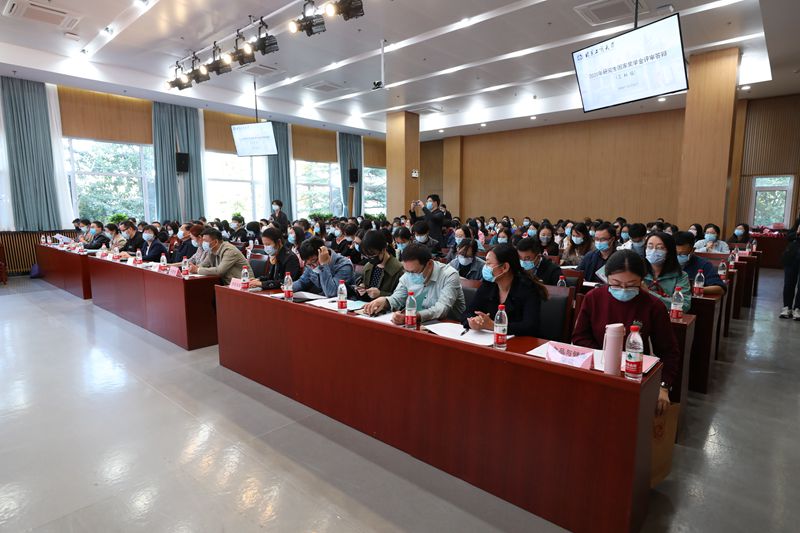 張德玉副書記致辭,他代表學校對各位候選人的入圍表示祝賀。他表示,研究生國家獎學金是研究生階段的最高榮譽,每年通過組織評審答辯的方式讓候選人得到一個充分展示自我,發揮榜樣力量學,還達到了優中選優、評審先進、表彰先進的目的。希望以此為契機,讓廣大研究生相互交流和學習,促進我校研究生學風的進一步提升。
