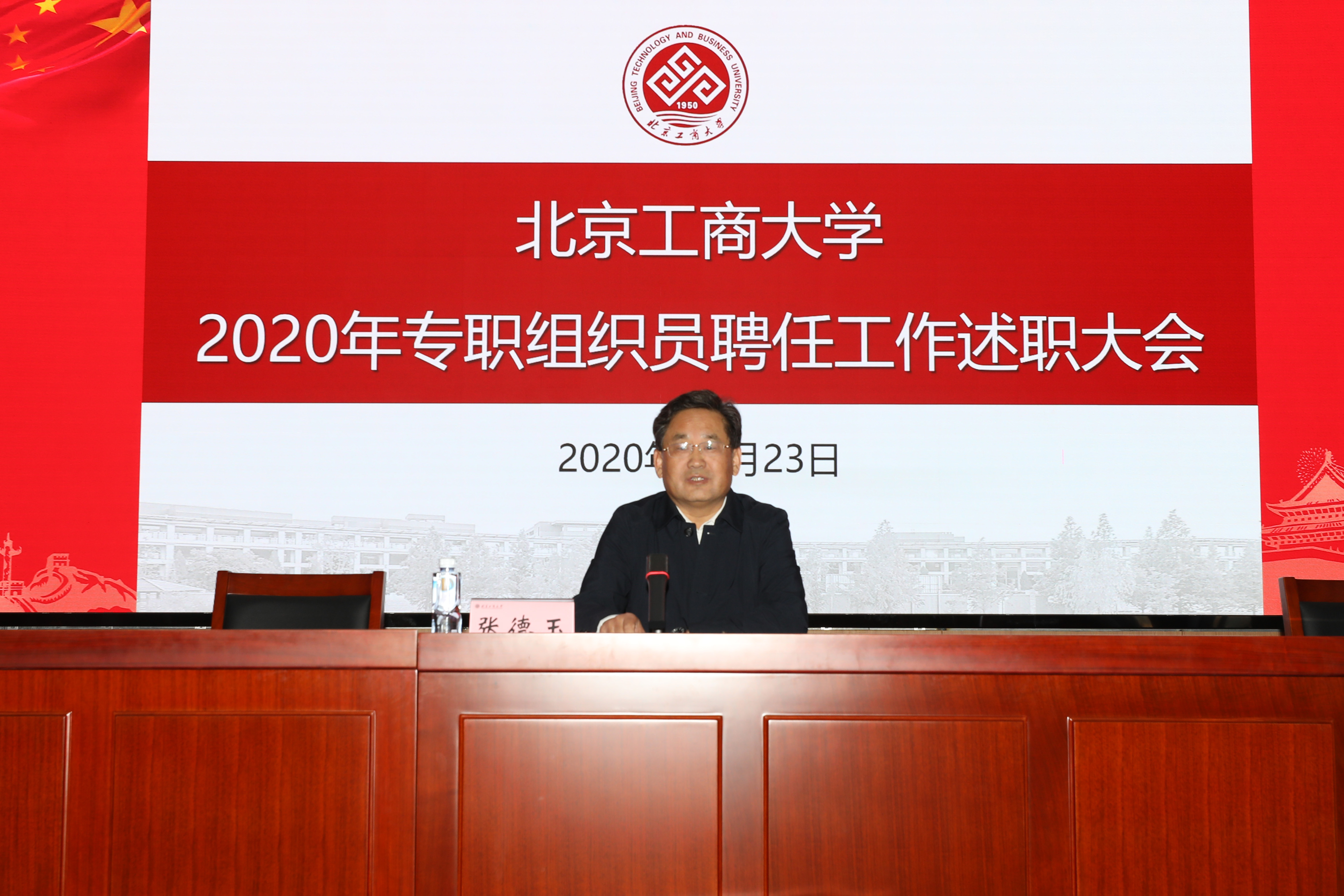 為進一步推動全面從嚴治黨向基層延伸、向縱深發展,不斷提高學校新時代基層黨的建設質量,10月23日上午,根據《2020年基層單位黨組織專職組織員聘任工作實施方案》的安排,學校在阜成路校區舉行基層單位黨組織專職組織員聘任工作述職大會。黨委副書記張德玉出席會議并講話。學?;鶎訂挝稽h組織專職組織員崗位聘任工作領導小組成員參會。會議由黨委組織部部長武晶晶主持。