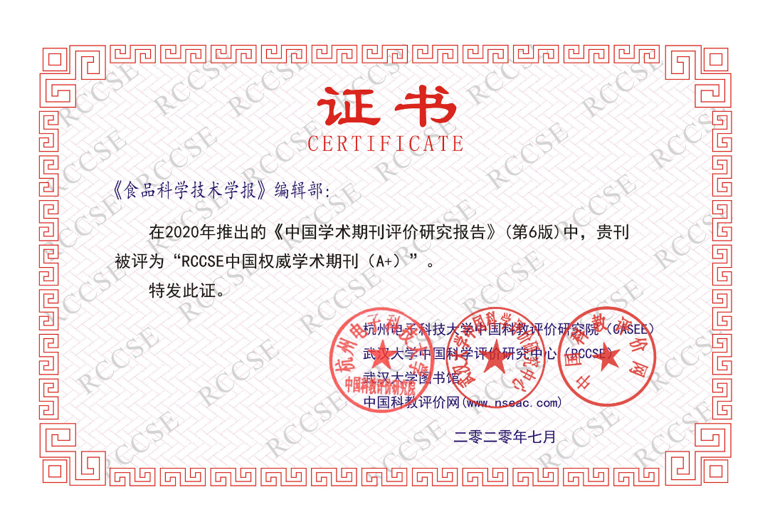 近日,RCCSE《中國學(xué)術(shù)期刊評價(jià)研究報(bào)告》(第6版)正式發(fā)布,我校主辦的《食品科學(xué)技術(shù)學(xué)報(bào)》被評為“RCCSE中國權(quán)威學(xué)術(shù)期刊(A+)”。在食品科學(xué)技術(shù)學(xué)科的51本中文期刊中,僅有3本期刊入選“權(quán)威期刊”(A+),《食品科學(xué)技術(shù)學(xué)報(bào)》排名第2位。