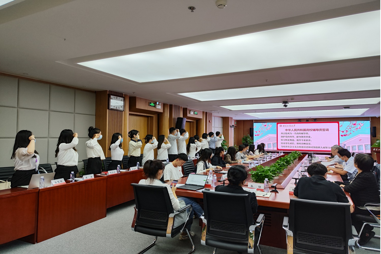 會議伊始,2022級工保輔導員鄭重宣誓志愿成為一名高校輔導員。李中奇向2022級工保輔導員送上工具書并提出工作要求。李中奇指出,要充分認識輔導員“為黨育人、為國育才”的神圣使命,要充分認識輔導員“做學生人生導師和知心朋友”的光榮職責,要充分認識提升輔導員職業能力和專業素養的重要意義。他要求輔導員要始終不忘以學生為中心的初心,深入落實立德樹人根本任務,堅持貼近實際、貼近學生,遵循思政教育規律,創造性地開展工作,努力練就過硬本領,為每一名學生服好務,對每一名學生負好責,成為學生成長路上的大先生。