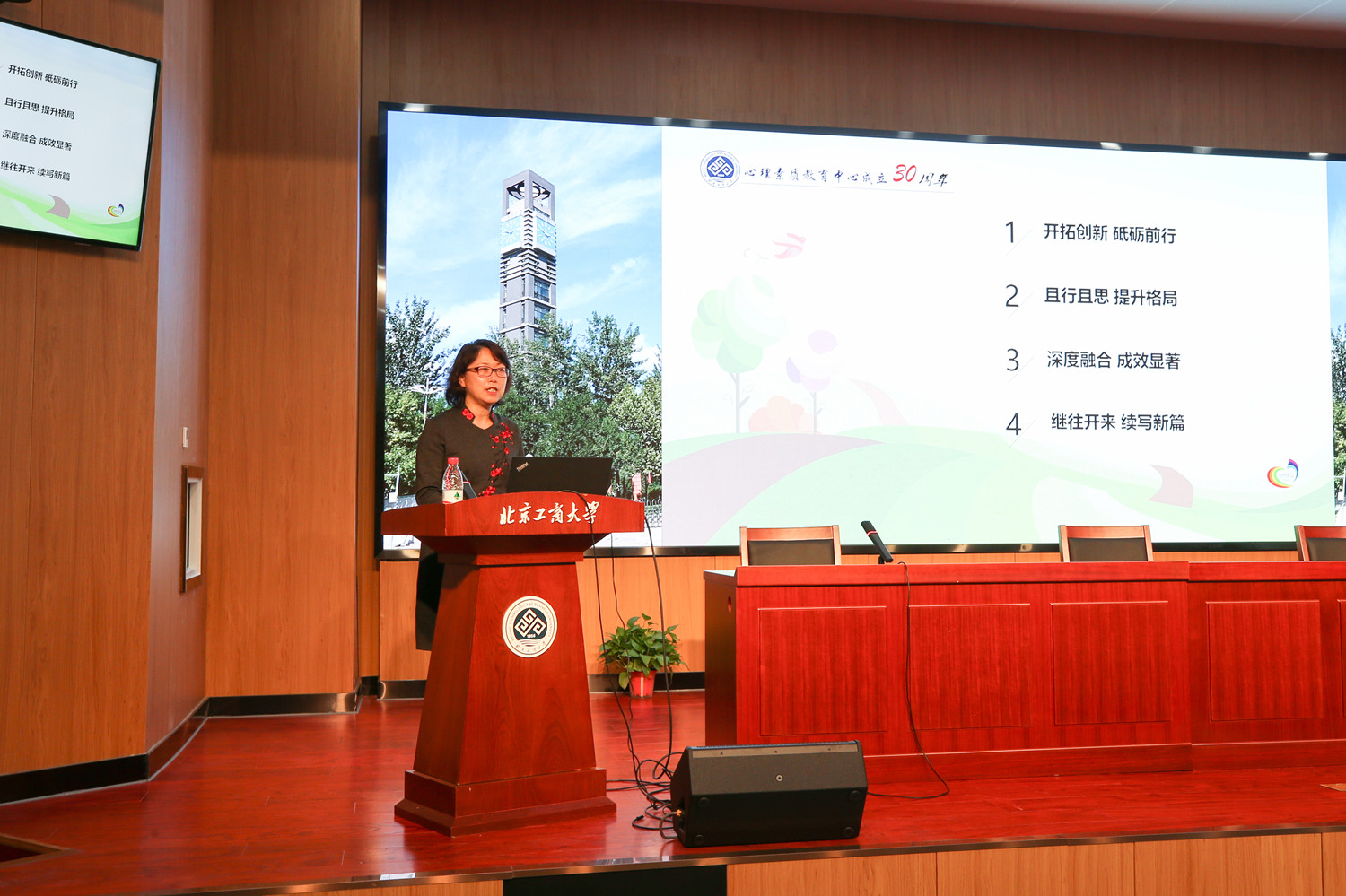 我校心理中心主任劉立新回顧了學校心理中心成立30年以來的發展歷程,她表示,我校是北京乃至全國率先開展大學生心理健康教育與咨詢工作的高校之一,在各級領導的大力支持和關心重視下,在開拓者的傾情奉獻和后來者勤奮耕耘下,學校心理中心已經逐步建成集教育教學、科學研究、咨詢服務和危機預防與干預為一體的工作體系,建構起具有我校特色的育心格局。