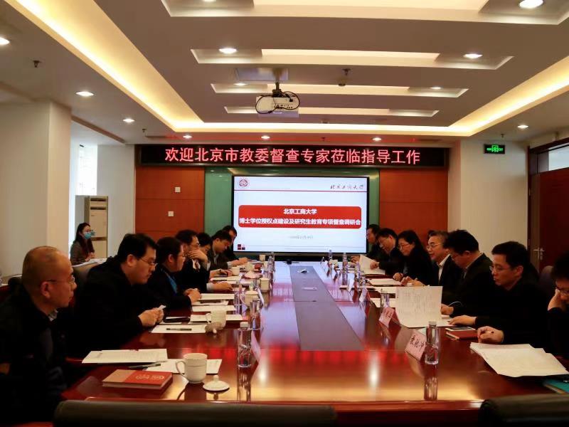 孫寶國校長代表學校對督查組的蒞臨指導表示熱烈歡迎,感謝北京市教委科學技術與研究生工作處一直以來對我校學科建設和研究生培養(yǎng)工作的指導和支持。他簡要介紹了我校博士點建設情況,強調(diào)我校高度重視博士學位授權點建設和研究生教育工作,博士點建設還處在不斷探索階段,希望督查專家多提建議,把脈問診,以便順利完成明年的驗收檢查工作,提高我校學位管理與研究生教育質(zhì)量。