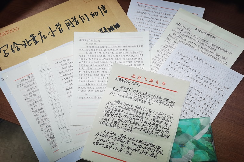 各參賽隊伍在本次營銷大賽中共獲得2298.76元銷售總額,學(xué)工部將這筆款項統(tǒng)一用于購買棉服,并捐贈給河北蔚縣北董莊小學(xué)的家庭經(jīng)濟困難學(xué)生。各小組同學(xué)為受贈學(xué)生寫了情真意切的書信,勉勵他們樹立遠大抱負,不畏眼前困難,成就理想人生。北董莊小學(xué)的同學(xué)們穿上溫暖的新衣,紛紛寫下回信,感謝北工商師生的關(guān)懷和激勵,表示一定會努力學(xué)習(xí),不負期待。捐贈活動加深了兩校共建的情誼。