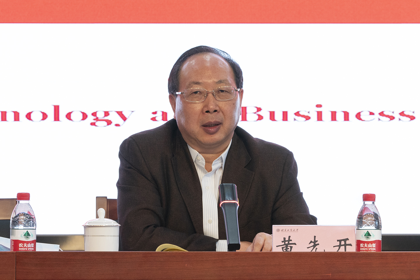 賈英民主持專題報告環節。經濟學院院長倪國華、食品與健康學院院長王靜、商學院院長毛新述分別對應用經濟學、食品科學與工程、工商管理三個高精尖學科的建設情況進行了匯報。國家級線上一流課程負責人宋煥祿教授和北京高校思政理論課特級教授王魯娜分別以《精耕細作,扎實推進,論一流線上課程建設》和《課程思政與思政課程協同育人的探索與思考課》作了專題報告。