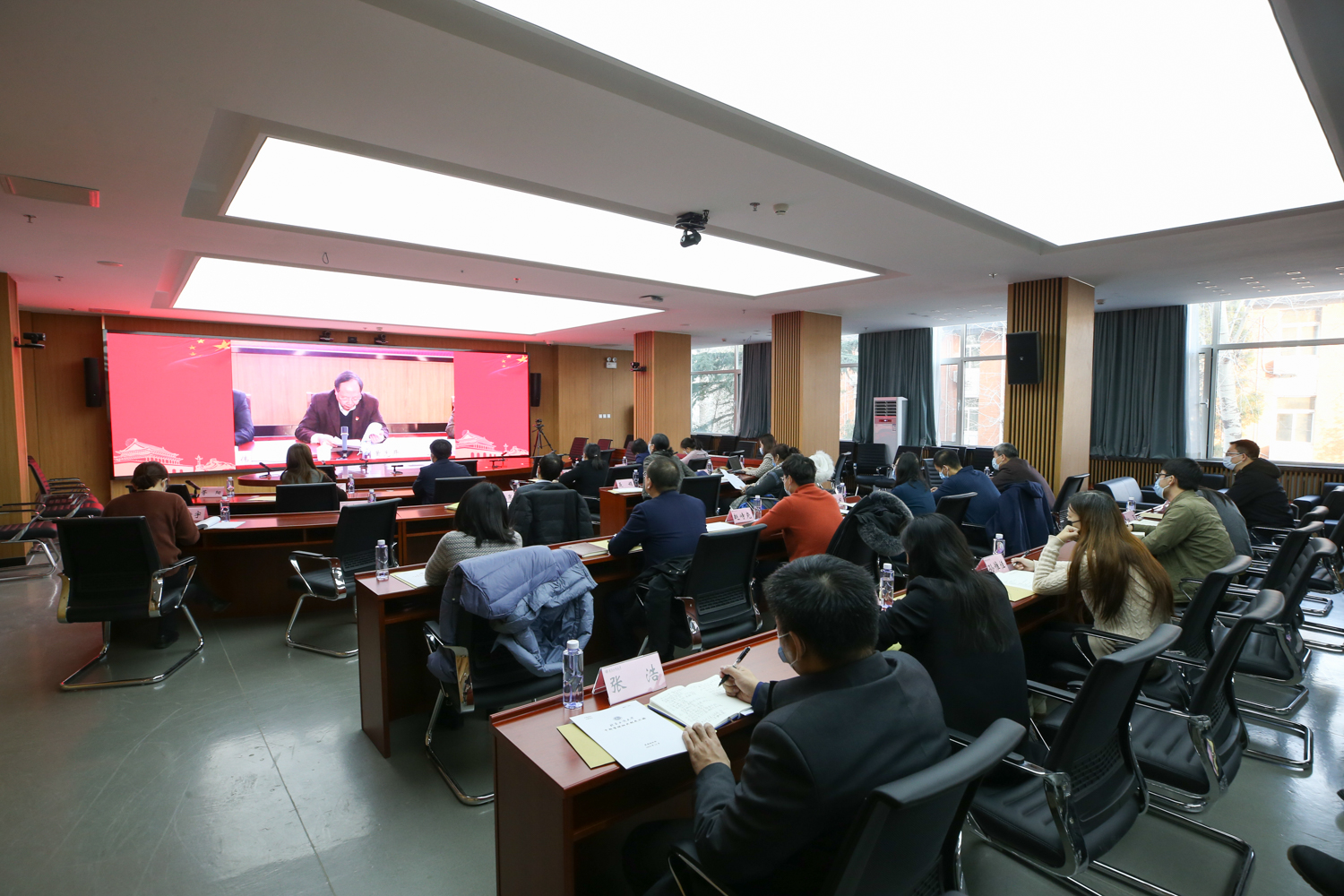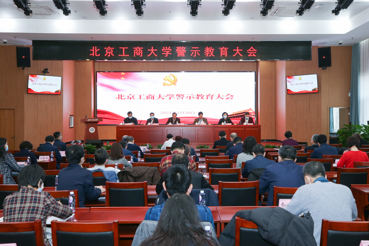 1月20日,學校在阜成路校區召開警示教育大會,通報剖析違規違紀典型案例和突出問題。全體校領導、中層干部、職能部門重點科室關鍵崗位管理人員參加大會。大會設主會場和兩個視頻分會場。會議由黨委副書記、校長孫寶國主持。