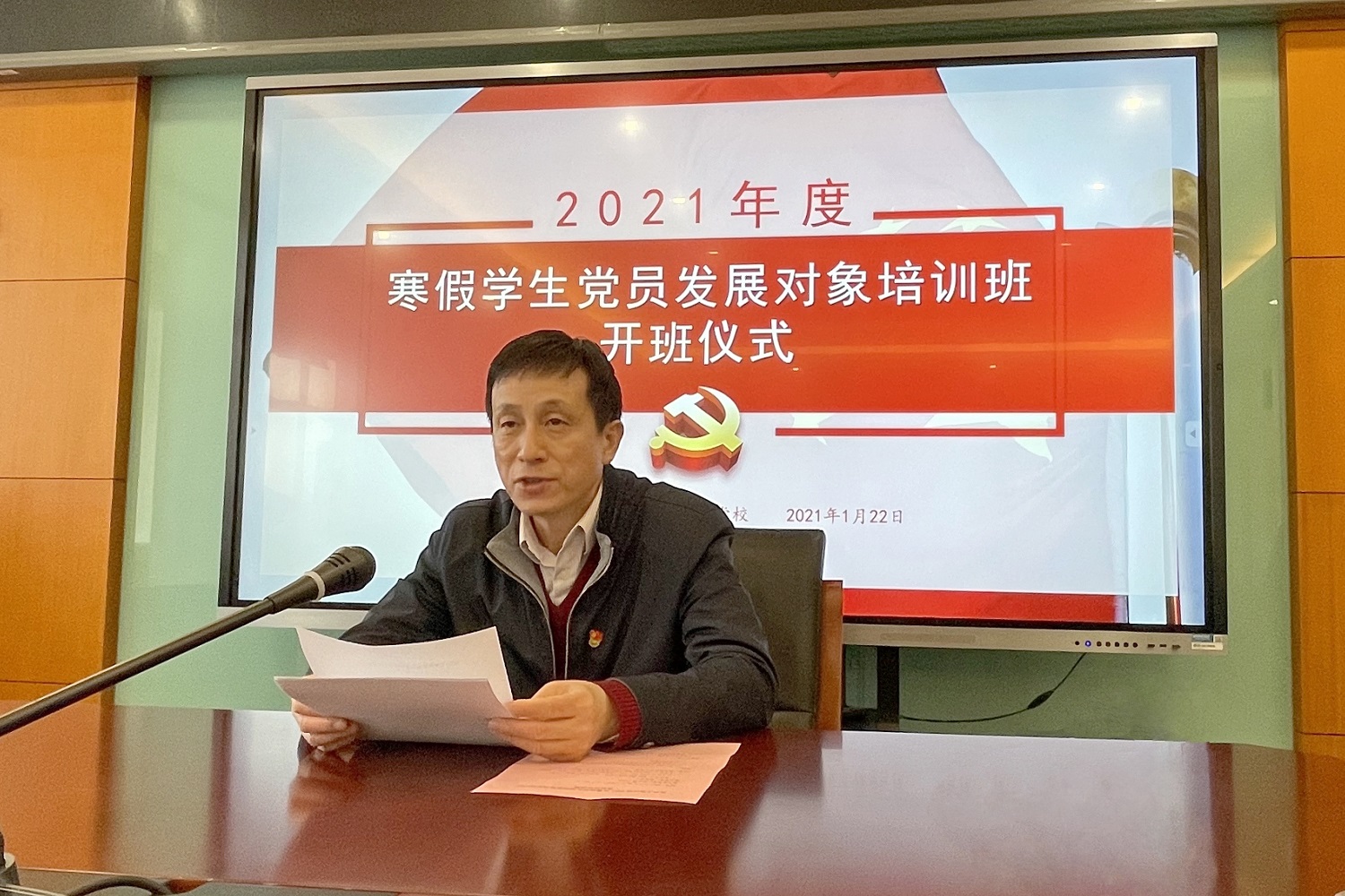 1月22日,開班儀式以騰訊會(huì)議直播的形式舉行。學(xué)校黨委副書記王偉作動(dòng)員講話,在肯定我校黨員師生工作的基礎(chǔ)上,分三個(gè)方面對(duì)培訓(xùn)班全體學(xué)員提出了希望要求。開班儀式后,中共北京市委講師團(tuán)專家團(tuán)成員、北京高校十九大精神宣講團(tuán)成員、首都師范大學(xué)郭海燕教授為同學(xué)們作了題為《增強(qiáng)制度自信,做中國特色社會(huì)主義制度的堅(jiān)定捍衛(wèi)者》的報(bào)告。