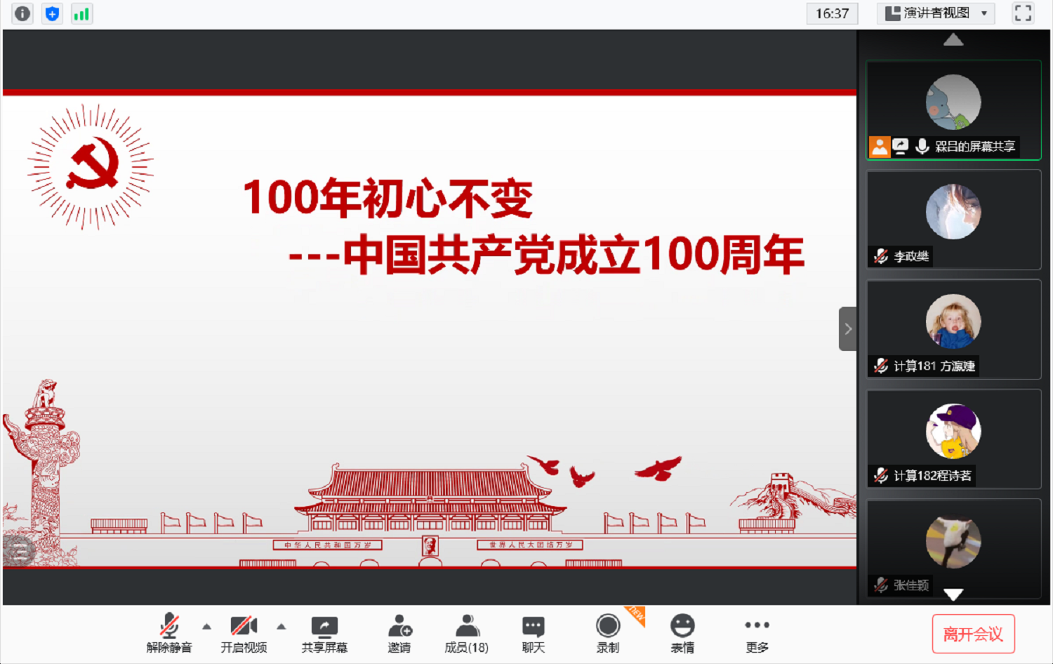 在討論交流環(huán)節(jié),各學(xué)院黨校班結(jié)合本學(xué)院實(shí)際情況,充分發(fā)揮主觀能動(dòng)性,分別圍繞“100年初心不變——中國共產(chǎn)黨成立100周年”和“抗‘疫’實(shí)踐彰顯中國特色社會(huì)主義制度的顯著優(yōu)勢(shì)”兩個(gè)主題開展了形式多樣的線上活動(dòng)。