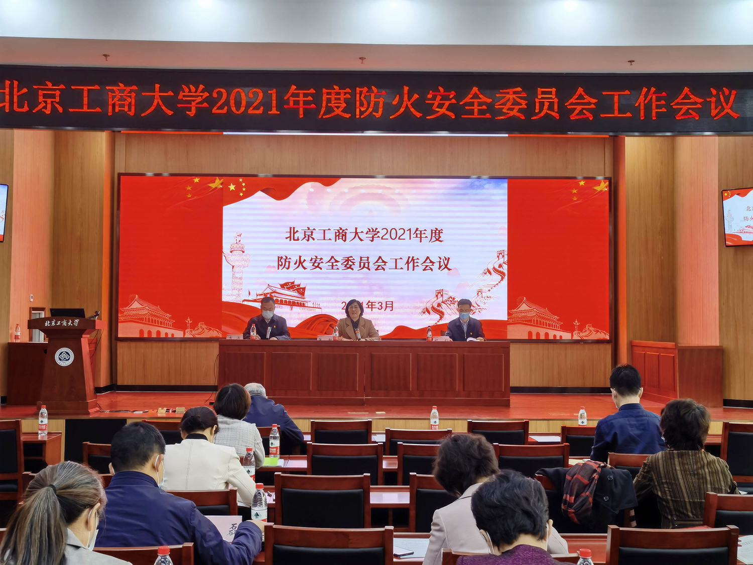 3月17日,學(xué)校在阜成路校區(qū)召開(kāi)防火安全委員會(huì)工作會(huì)議,總結(jié)2020年度學(xué)校消防安全工作,表彰2020年安全教育宣傳實(shí)踐月活動(dòng)優(yōu)秀組織單位,部署2021年消防工作。學(xué)校防火安全委員會(huì)主任、副校長(zhǎng)張?jiān)懦鱿瘯?huì)議并講話(huà)。學(xué)校各單位消防安全責(zé)任人、管理人參加會(huì)議。防火安全委員會(huì)辦公室主任、保衛(wèi)處處長(zhǎng)吉濤主持會(huì)議。