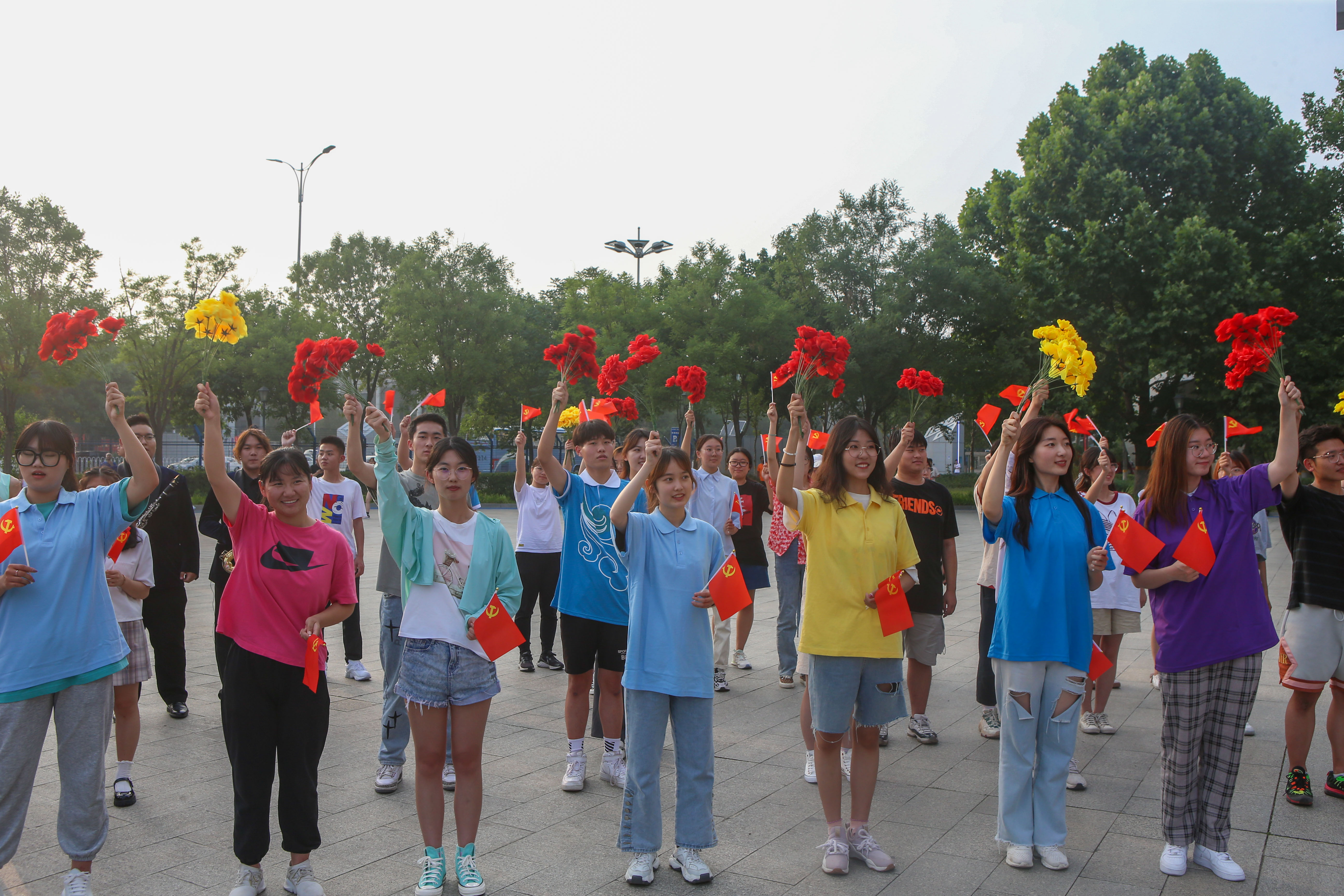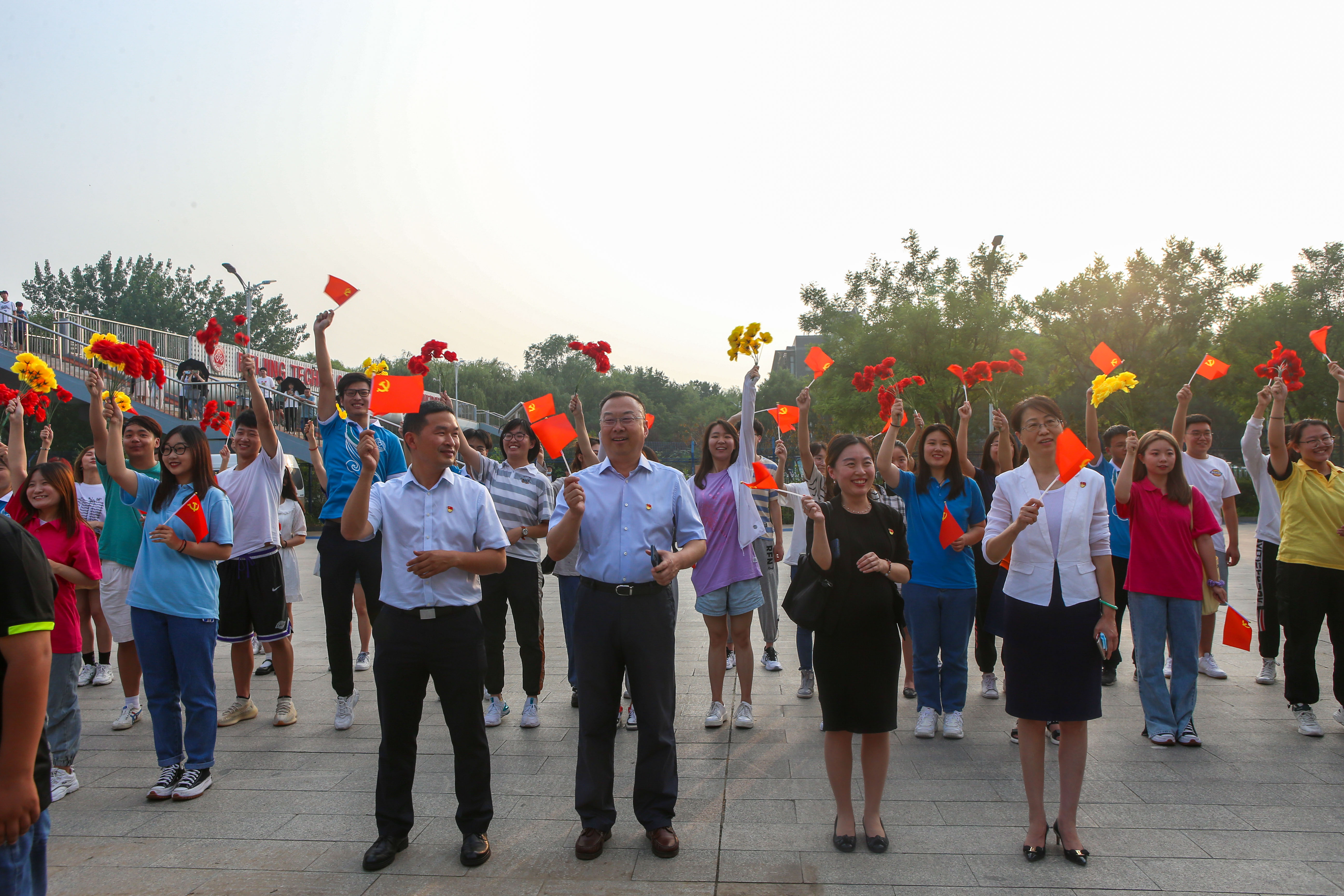 “唱支山歌給黨聽,我把黨來比母親……”6月28日下午,學校良鄉主校區傳出了一陣陣悠揚而又動人的歌聲。數百名同學伴著悠揚的音樂,揮舞著手中的黨旗和花朵,洋溢著青春活力在圖書館廣場激情高歌。“奮進百年路,啟航新征程”北工商團員青年唱響百年頌歌主題教育“快閃”正在上演。學校黨委副書記李中奇出席活動。相關職能部門負責人與同學們一起,用歌聲唱響黨的百年頌歌。