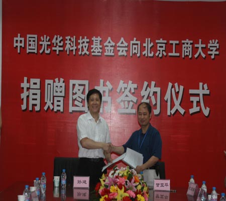 孫建主任簡要介紹了“中國光華科技基金會公益書海工程”啟動近三年來支持國家文化建設,向社會各界捐贈圖書的情況。中國光華科技基金會是在民政部登記注冊的全國性科技類公募基金會,業(yè)務主管單位為共青團中央。孫建主任說,圖書館是為人們提供文化營養(yǎng)和精神食糧的場所,能為北京工商大學圖書館捐贈圖書,支持學校的文化建設感到十分榮幸。