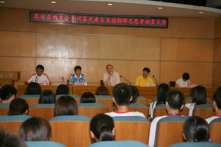 會上,校黨委副書記盧思鋒全面介紹了我校承擔(dān)的各類奧運(yùn)會志愿服務(wù)工作,并對我校投入志愿服務(wù)同學(xué)的工作給予了充分的肯定。他結(jié)合自身經(jīng)歷和體會,發(fā)表了熱情洋溢的臨戰(zhàn)動員講話,并對志愿者提出了希望和要求:一,戒驕戒躁,珍惜榮譽(yù),把工作想全做細(xì),以飽滿的熱情,積極主動投入到志愿服務(wù)工作中去;二,進(jìn)一步增強(qiáng)榮譽(yù)感和責(zé)任感,發(fā)揚(yáng)拼搏進(jìn)取、不斷創(chuàng)新的精神,努力創(chuàng)造一流的服務(wù)質(zhì)量和水平;三,遵守紀(jì)律,注意安全,增強(qiáng)安全防范意識,正確對待奧運(yùn)安全穩(wěn)定工作,服從指揮,熱情服務(wù),從容自信做好志愿服務(wù)工作。隨后,與會領(lǐng)導(dǎo)為志愿者代表配發(fā)了奧運(yùn)會志愿者證件并與志愿者們合影留念。