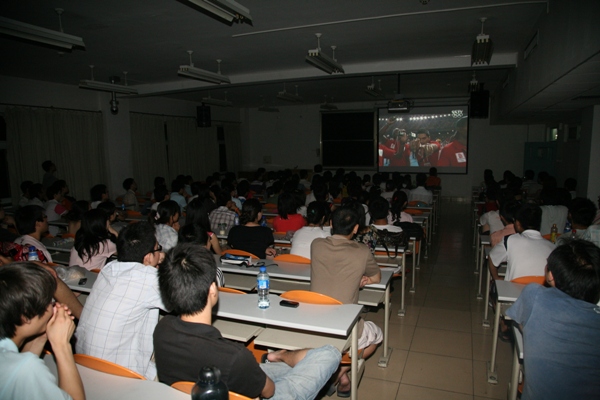 824晚上800,教三樓一層的五個教室座無虛席,我校近千名學生在學生網絡中心、后勤處、保衛處和校團委的組織下以良好的秩序、飽滿的熱情收看了北京奧運會精彩的閉幕式。