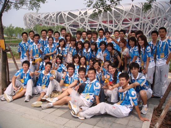 8月26日上午,我校87名奧運會、殘奧會開閉幕式看臺互動指揮志愿者在奧運籌辦與賽時保障指揮部辦公室副主任徐紅京等四位老師的帶領下來到國家體育場鳥巢進行“志愿者1分鐘DV視頻拍攝”。