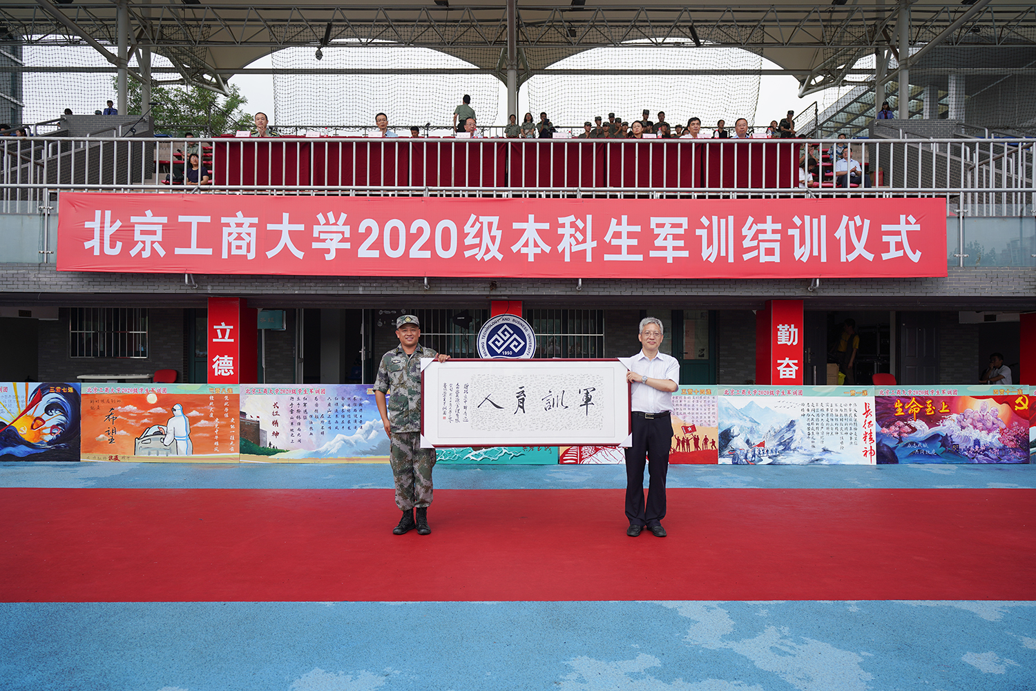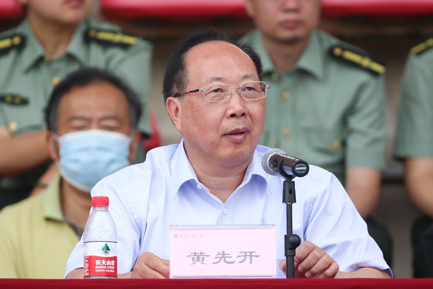黃先開作總結講話。他代表學校黨委行政對高質量完成此次軍訓任務的2020級2823名參訓同學們表示熱烈祝賀,對付出辛勤汗水的教官、全體參訓教師、參與軍訓保障工作全體教職員工致以最誠摯的感謝!他表示,學子們以氣宇軒昂、整齊劃一的分列式,巾幗不讓須眉的匕首操,威武雄壯的警棍盾牌操,獨具特色的旗語操,一招制敵的擒敵拳,貼近實戰的綜合戰術演練等軍事項目匯演,為大家呈現了一場軍事技能的視覺盛宴,彰顯出新時代北工商學子的風采。黃先開書記指出,此次軍訓對于培養愛黨愛國情懷、樹立紀律意識、增強集體榮譽感、磨煉意志品質具有重要的意義。他希望同學們能將軍訓成果轉化為今后的精神力量和行為指南:一是保持優良作風,堅定在逆境中勇于拼搏的信念。要珍惜軍訓這堂人生大課,把困難與挑戰當做人生的寶貴財富,把吃苦耐勞的韌性、昂揚向上的斗志、開拓進取的精神帶到今后的學習生活中,堅定理想信念,錘煉意志品質,成就精彩人生。二是砥礪愛國情懷,弘揚在成長歷程中甘于奉獻的精神。要以戍邊烈士陳祥榕為榜樣,牢記不怕犧牲、甘于奉獻的軍人血性,義無反顧維護祖國利益不受侵犯。三是樹立鴻鵠之志,形成在偉大時代中胸懷天下的奮斗目標。要把個人價值的實現和國家、民族的發展復興統一起來,把個人目標與時代發展統一起來,胸懷大局,為實現中華民族偉大復興的中國夢貢獻青春力量。希望全體同學能以實現中華民族偉大復興為己任,增強做中國人的志氣、骨氣、底氣,不負時代,不負韶華,不負黨和人民的殷切期望!