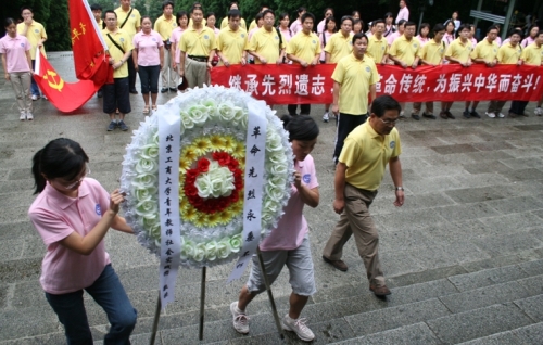 追尋著紅軍的足跡,考察團成員們懷著敬仰之情從擁有大量革命史料的井岡山革命博物館、八一起義紀念館到醫療設備極其簡陋的小井紅軍醫院舊址,從制造出紅色政權第一塊銀元的紅軍造幣廠到簡樸的毛主席舊居,從天然屏障黃洋界到莊嚴肅穆的井岡山革命烈士陵園,從八角樓的燈光到朱德、毛澤東首次會面的龍江書院……一路走來,所到之處都能領悟到“堅定信念、艱苦奮斗,實事求是、敢闖新路,依靠群眾、勇于勝利”的井岡山精神的真諦。在井岡山革命烈士陵園,大家懷著無比崇敬的心情向烈士們敬獻了花圈,黨員同志們面向烈士紀念碑重溫了入黨誓詞:“我志愿加入中國共產黨,擁護黨的綱領……” 這是一次思想的升華,這是一次精神的洗禮,這是一次深刻的革命傳統教育,井岡山精神深深地植入了每個考察團成員的骨髓。他們紛紛表示,一定要發揚井岡山精神,艱苦奮斗,勇于創新,在新時期,努力踐行科學發展觀,為實現學校又好又快發展奉獻自己的青春和力量。
