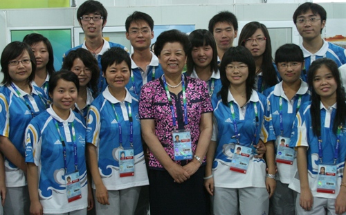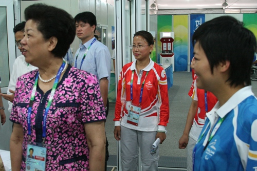 9月5日上午,全國人大副委員長、奧運村(殘奧村)村長陳至立到殘奧村分級中心慰問在這里服務的工作人員和我校在此工作的志愿者們。