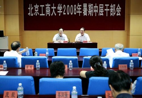 9月8日,學校在阜成路校區召開2008年暑期中層干部會。校領導孫堯東、譚向勇、盧思鋒、張德玉、孫寶國、謝志華、李朝鮮、王尚忠、張耘,教工委聯絡員畢孔彰及全體中層干部參加了會議。