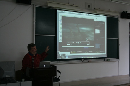 Garman教授結合他個人參與制作的《后天》、《絕密飛行》、《荒島余生》、《時間機器》多部特效影片片段,為同學們詳細講解了電影中如何利用數(shù)字特效技術制作出云,雨,霧,爆炸,破碎,布料運動模擬等數(shù)字特效領域的前沿技術。在回答老師和學生提問的過程中他介紹了北美最前沿特效領域發(fā)展現(xiàn)狀以及視覺特效及視覺特效師在北美CG產(chǎn)業(yè)鏈中的重要作用, 分析了當前中國特效發(fā)展的現(xiàn)狀,未來的發(fā)展趨勢, 并對數(shù)字內(nèi)容學院相關專業(yè)方向的學生在專業(yè)知識貯備、個人發(fā)展方向及職業(yè)規(guī)劃等方面進行了指導。Garman 教授風趣、幽默的語言和生動、有趣講解引得在場學生的陣陣掌聲。