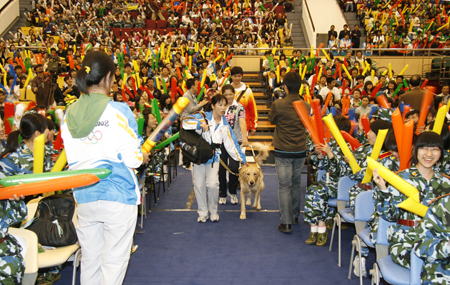 志愿者請(qǐng)奧運(yùn)冠軍簽名留念